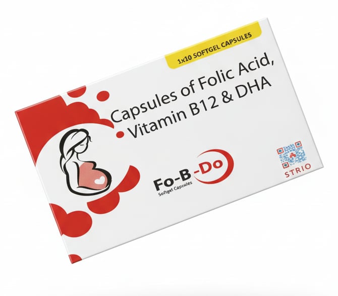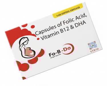 Fo-B-Do is a powerful combination of Folic Acid, Vitamin B12, and Docosahexaenoic Acid (DHA) designed to support overall health, particularly during pregnancy, and to promote optimal brain and cardiovascular function.